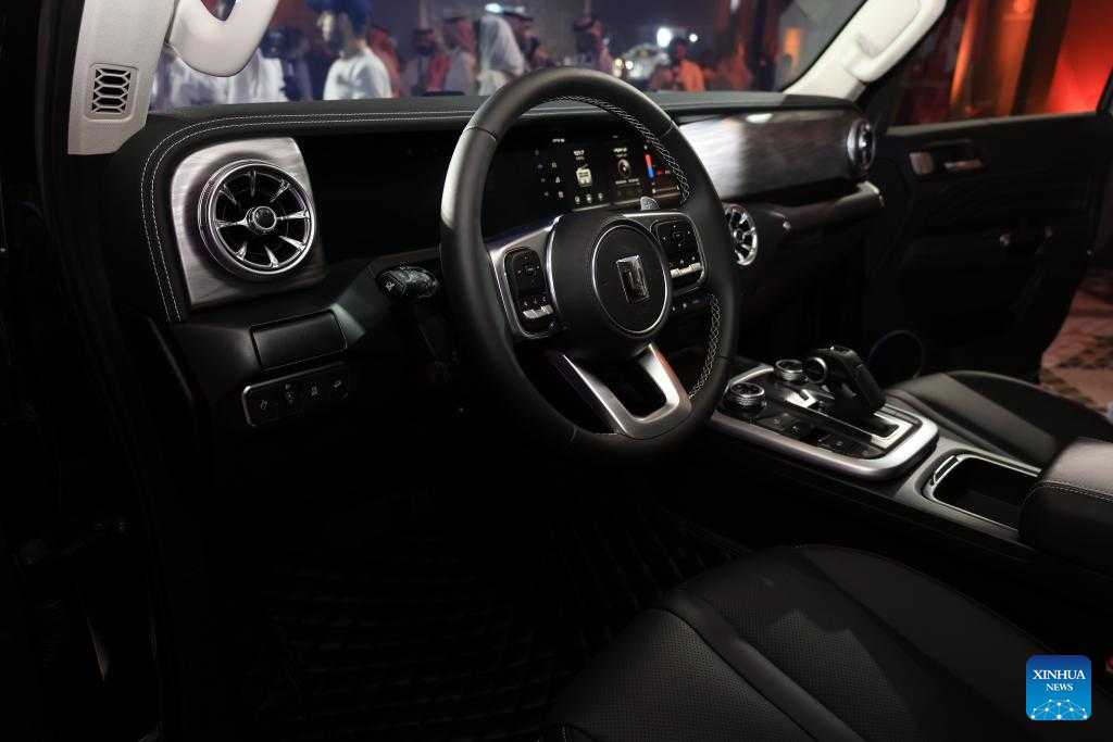 Photo taken on July 3, 2022 shows the interior of a "Tank 300" off-road vehicle at a press conference in Riyadh, Saudi Arabia. Two off-roaders from China's Great Wall Motor Company have made their overseas debut in Riyadh. (Xinhua/Wang Haizhou)