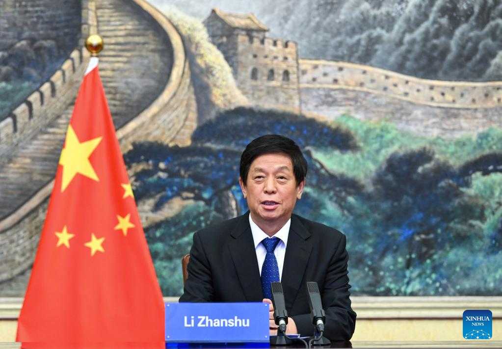 BEIJING, July 6 (Xinhua) -- China's top legislator Li Zhanshu on Wednesday held talks with Tanzila Narbayeva, chairperson of the Senate of Uzbekistan, via video link, with the two sides agreeing to enhance parliamentary exchanges to facilitate the development of bilateral relations.
