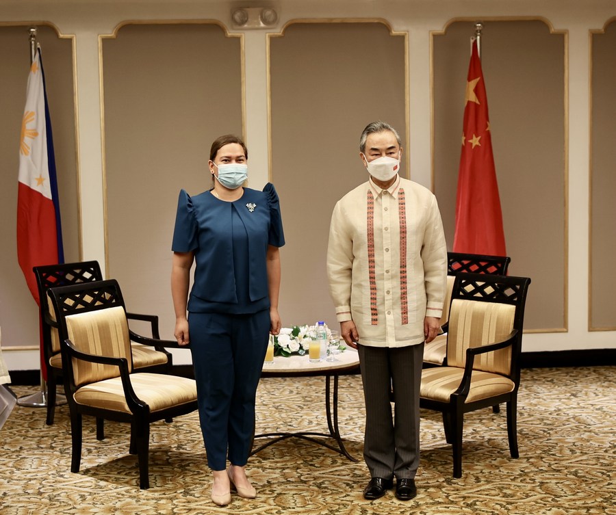 Philippine Vice President Sara Duterte-Carpio (L) meets with visiting Chinese State Councilor and Foreign Minister Wang Yi in Manila, the Philippines, on July 6, 2022. (Xinhua/Rouelle Umali)