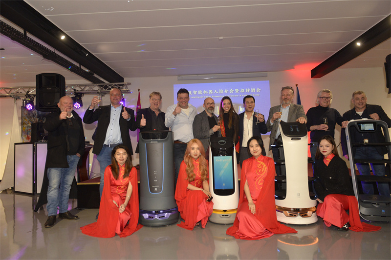 由比利时华商会和中欧商务中心联合举办的“普渡智能机器人推介会”3月4日在比利时博雷姆市举行。活动期间,4款功能各异的智能机器人亮相现场,担负“迎宾”“送餐”“回收”等任务,中国智造获得现场嘉宾好评。