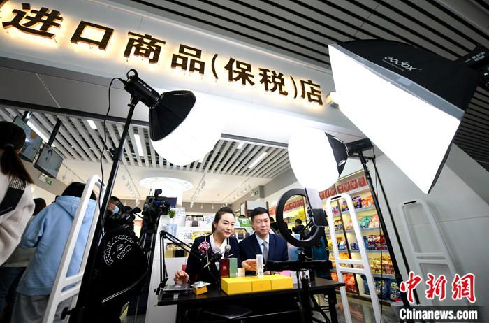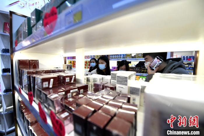 3月8日,福建福州,顾客在保税店购买商品。 中新社记者 王东明 摄