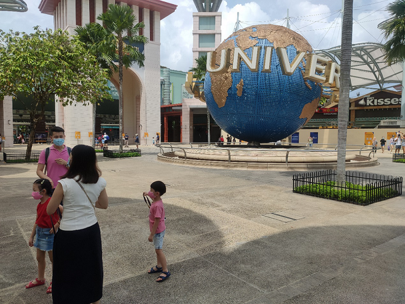 图为7月4日新加坡环球影城门口,游客不多。(记者李晓渝摄)
