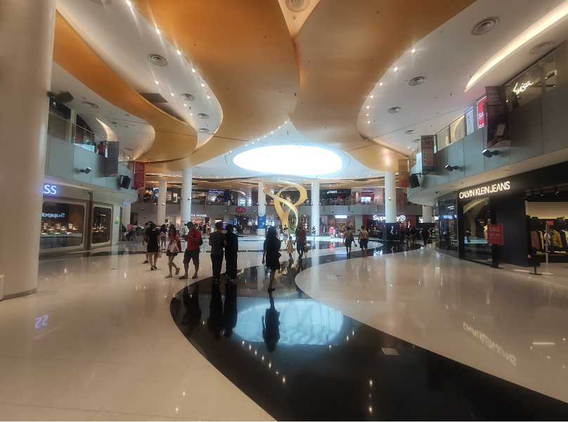 图为7月4日新加坡怡丰城购物中心内人流明显增加。(记者李晓渝摄)