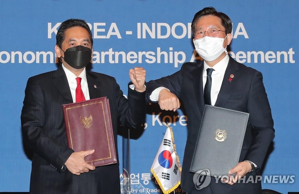 韩国产业通商资源部长官成允模18日同印尼贸易部长苏帕曼托在首尔签署《韩国与印尼关于建立更紧密经贸关系的安排》(CEPA)。这是两国自2012年开启CEPA谈判以来时隔8年正式签署协议。