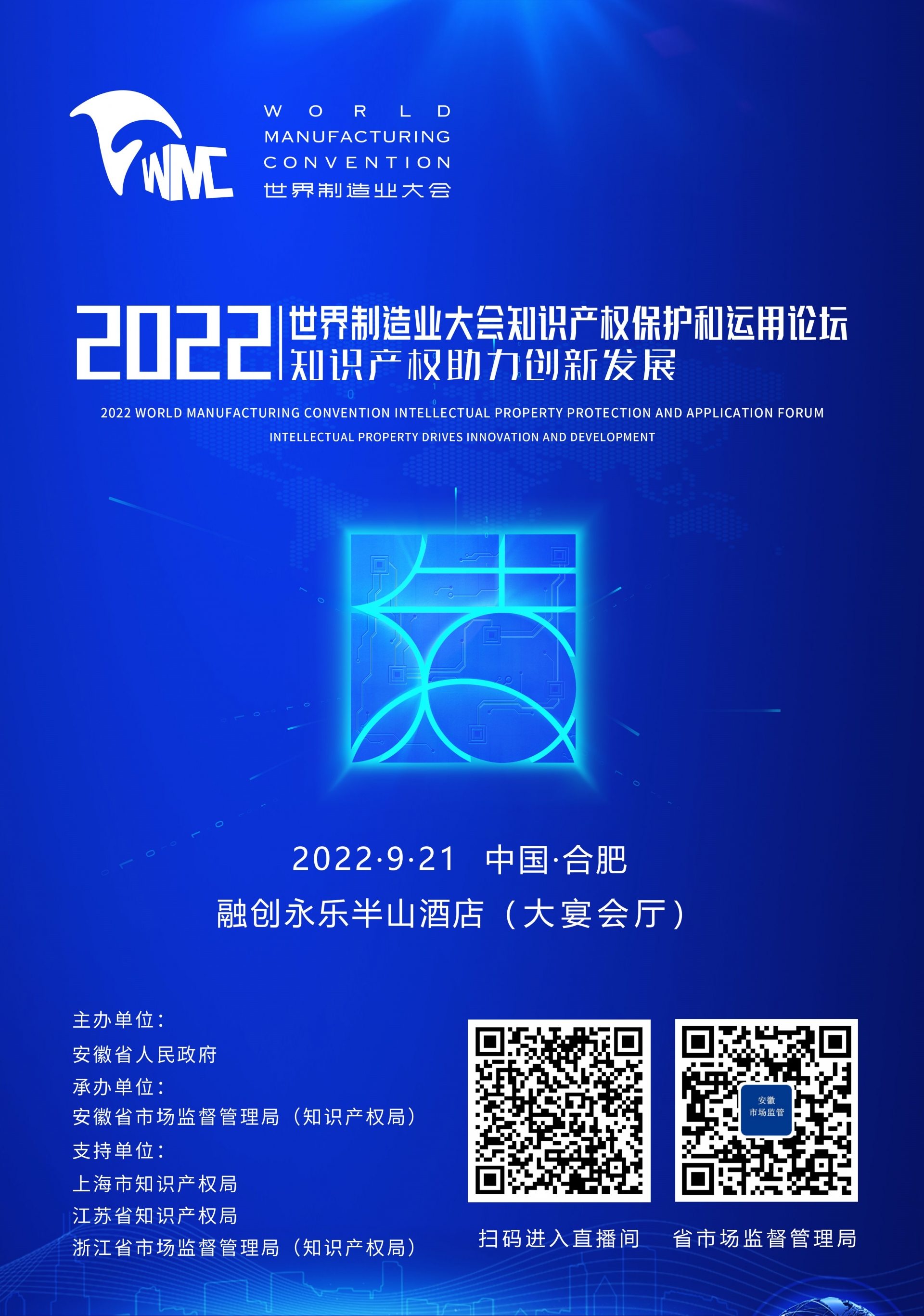 2022世界制造业大会9月20日在合肥开幕。作为本届大会平行论坛之一的“知识产权保护和运用论坛”,于9月21日上午在合肥融创永乐半山酒店举办。