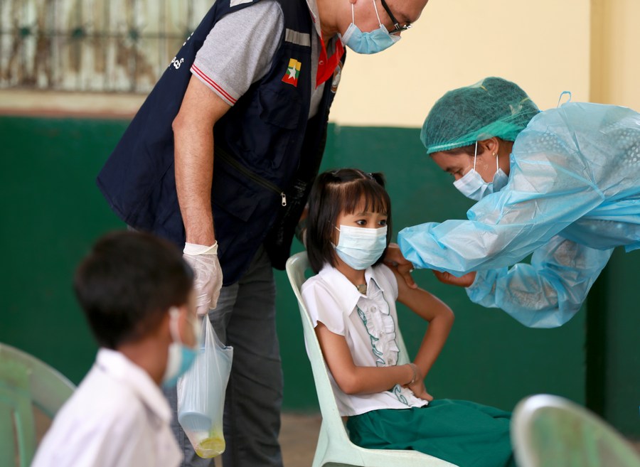 Myanmar has been vaccinating children aged 5 to 12 since June 2. The country has some 3.62 million school children of the cited age, and they were currently being inoculated with China's Sinopharm vaccine, according to the health ministry.