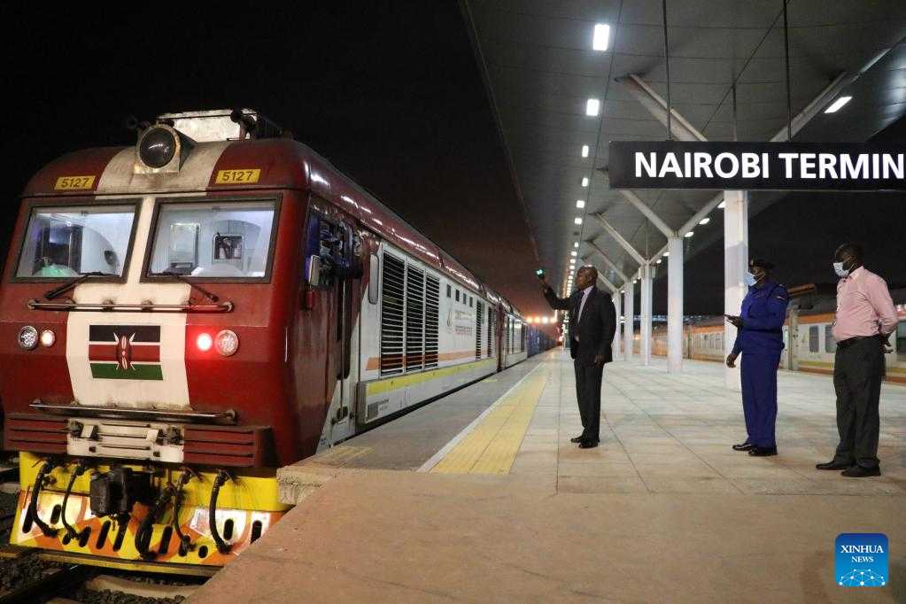 Photo taken on Jan. 5, 2022 shows a tea export special train of the Mombasa-Nairobi Standard Gauge Railway (SGR) in Nairobi, Kenya,. According to data from Afristar, the Mombasa-Nairobi Standard Gauge Railway (SGR) has transported more than 1.7 million TEUs of containers in the last five years. In addition, the Mombasa-Nairobi SGR runs 16 freight trains daily. (Xinhua)
