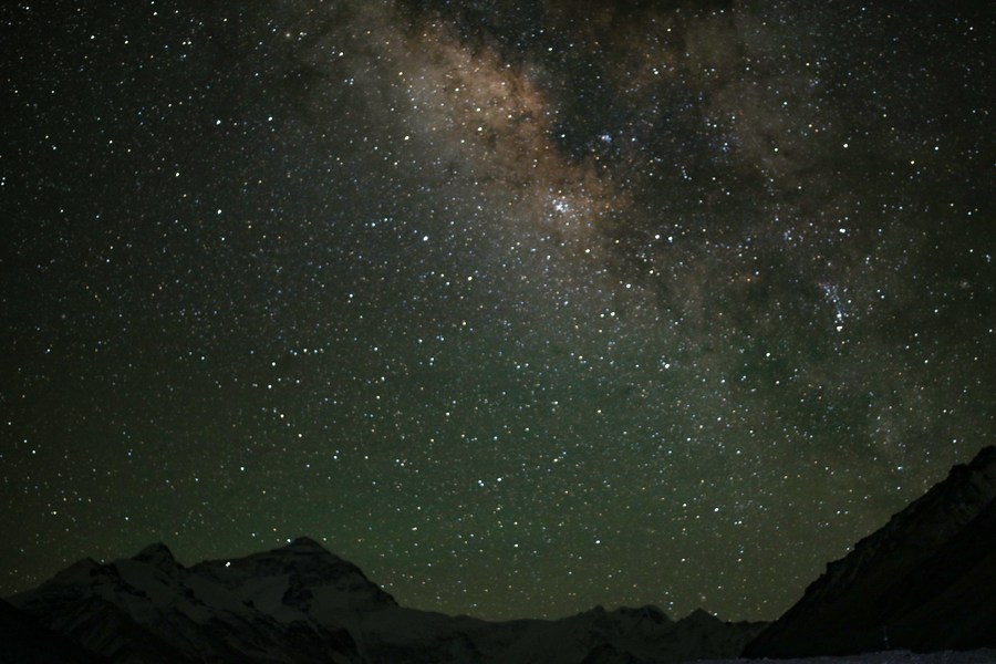 Photo taken on May 4, 2022 shows a view of the starry night sky as seen from the Mount Qomolangma base camp. (Xinhua/Jiang Fan)
