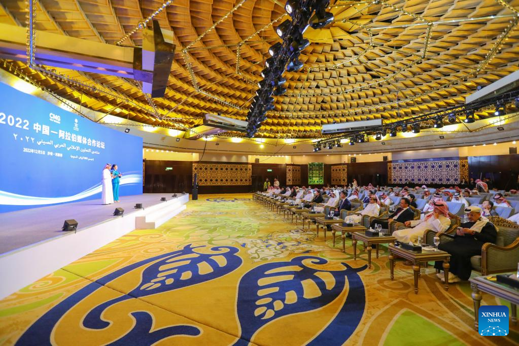 The 2022 Chinese-Arab Media Cooperation Forum is held in Riyadh, Saudi Arabia, Dec. 5, 2022.