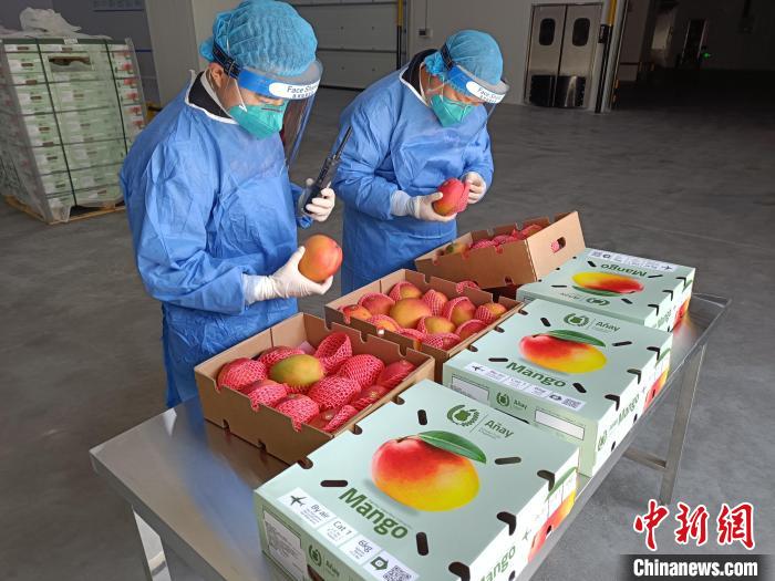 宁波海关关员对进口芒果进行检验检疫。 赵培钧 摄