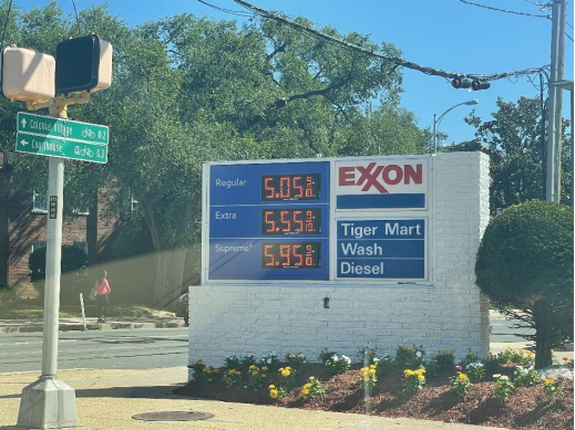 在记者驻地附近的美孚加油站,普通汽油价格一度超过每加仑(3.785升)5美元高位。记者在一次加油过程中看到一位消费者仅加油5美元便开车离去,也有消费者在加油过程中看到高昂的油价而中途放弃加油。