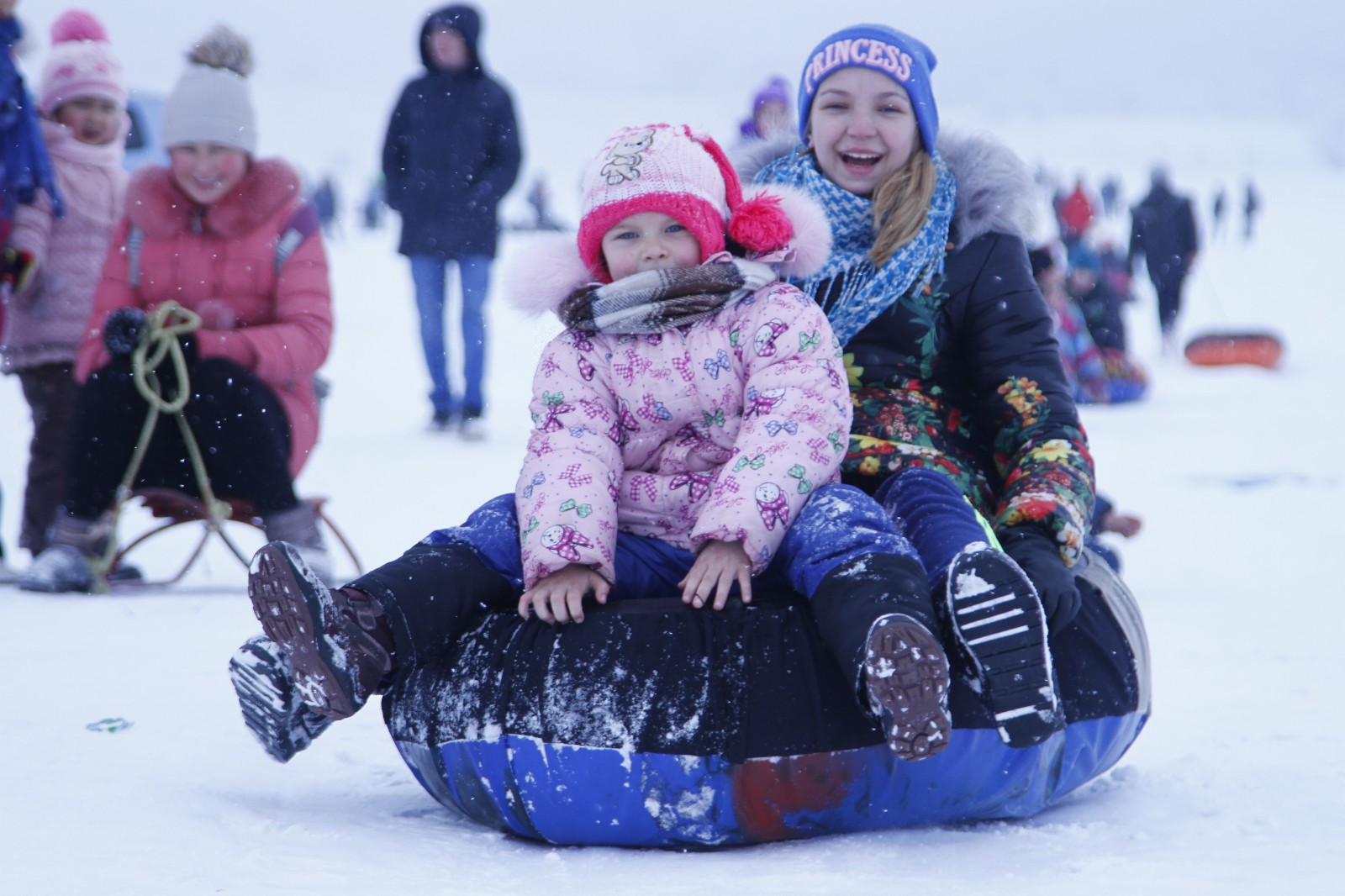 2016年2月1日,吉尔吉斯斯坦首都比什凯克近郊,“人人滑雪-2016”雪上体育赛事举行,孩子们在进行雪上换“轮胎”游戏。新华社发(罗曼摄)