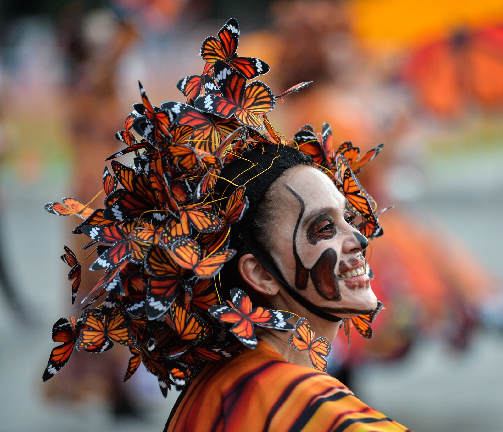 2018年10月27日,墨西哥首都墨西哥城,民众参加亡灵节游行。亡灵节是墨西哥最隆重、最独特的节日之一。墨西哥土著人认为,死亡并不是一件悲伤的事情,反而应该用歌舞和五彩斑斓的庆典欢迎亡灵们回家。辛悦卫/新华社