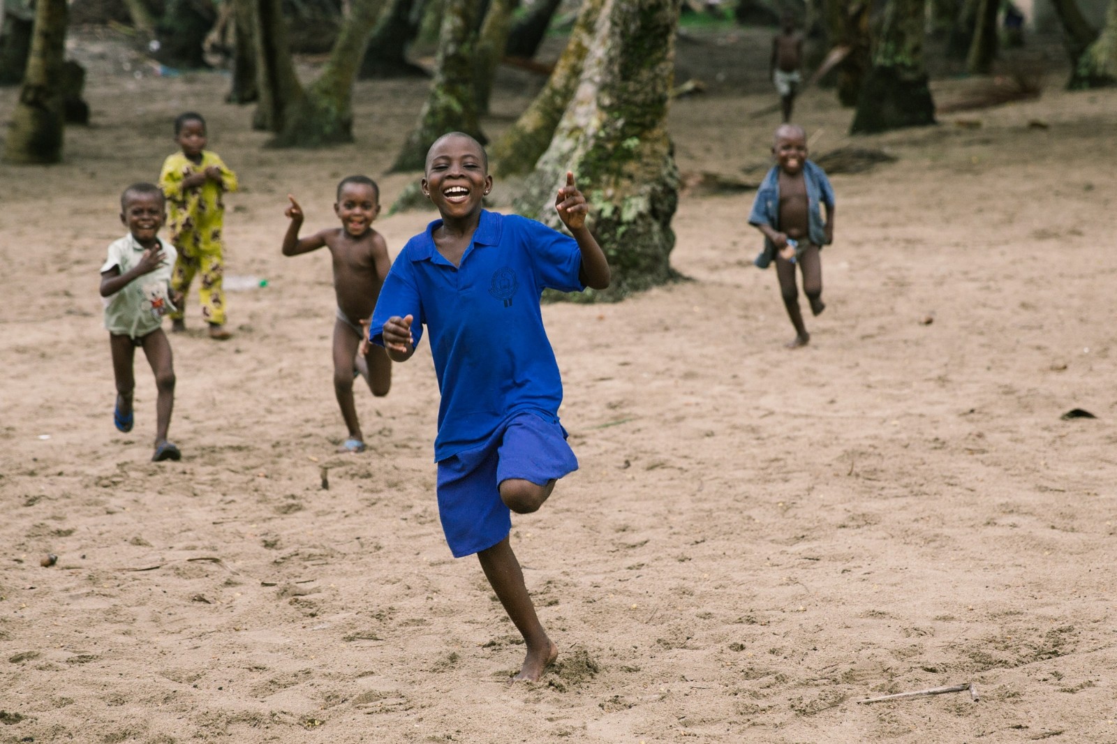 2014年1月31日,尼日利亚经济中心拉各斯莱基海滩上一个渔村,几名儿童在沙滩上嬉戏。新华社发(张唯一摄)