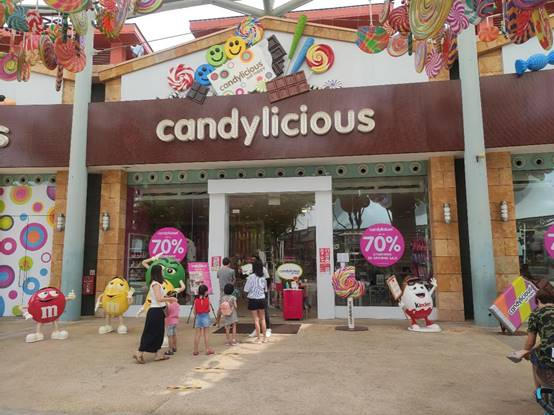 7月4日,几位客人在新加坡圣淘沙Candylicious糖果屋门口排队(新华社记者 李晓渝 摄)