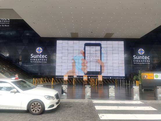 8月6日,曾举办过东盟峰会等重大活动的新加坡新达城国际会议展览中心的入口被拦住(新华社记者 李晓渝 摄)