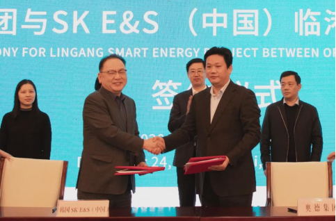 12月24日,奥德集团与韩国SK E&S(中国)临港智慧能源项目签约仪式在山东临沂举行。奥德集团总裁林波与SK E&S(中国)总裁赵真皓分别代表双方签约,山东临沂市委常委、常务副市长侯晓滨,市政府副秘书长王鑫,莒南县委书记、临港区党工委书记张佃虎,SK E&S(中国)总经理李民正出席仪式,临港区党工委委员、管委会副主任孙玉新主持仪式。