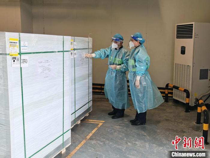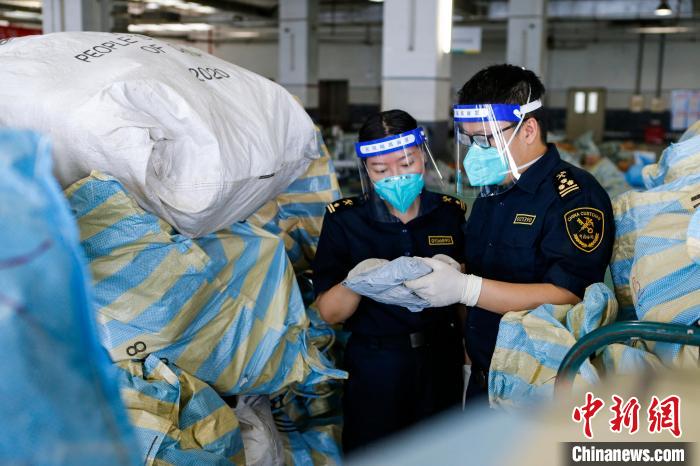 图为北京大兴国际机场海关关员现场查验,保障出口货物快速通关。 唐一潇 摄